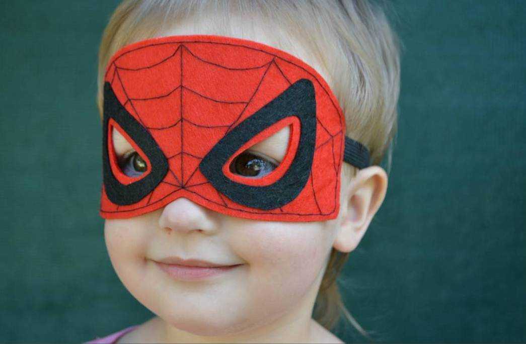 Обязательным атрибутом Спайдермена являются красные очки или маска. Рекомендуется изготовить их из эластичного материала соответствующего цвета и нанести чёрной краской узор в виде паутины. В итоге получится оригинальный аксессуар, которому будет очень рад ваш маленький Человек-паук.
