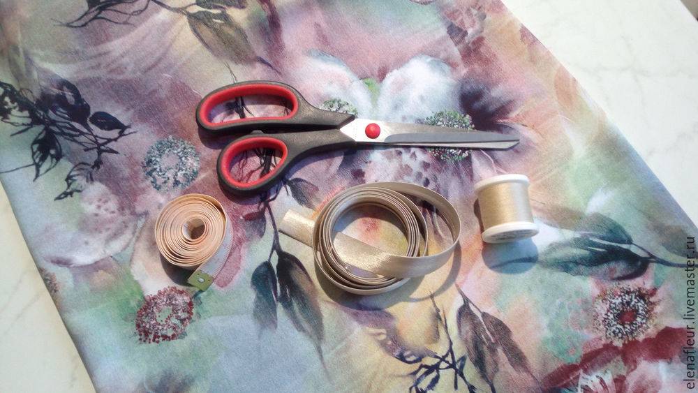 - ткань (выбирайте легкие, струящиеся, немнущиеся). Необходимо 2 длины при ширине 1,5 м. У меня 2 метра;