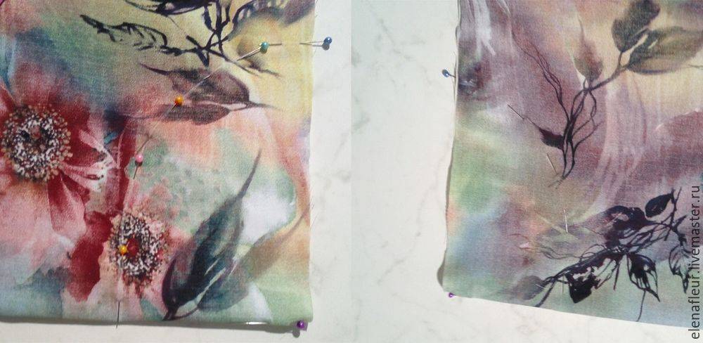 - Ткань следует хорошо проутюжить и сложить пополам так, чтобы лицевая сторона легла внутрь;