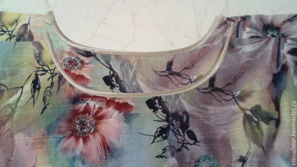 Нам нужна легкая струящаяся ткань. Такая туника прекрасно подойдет для деловых встреч. придерживайтесь инструкции в фото.