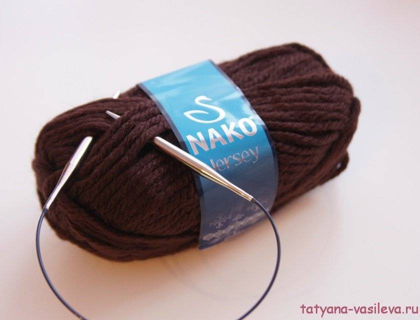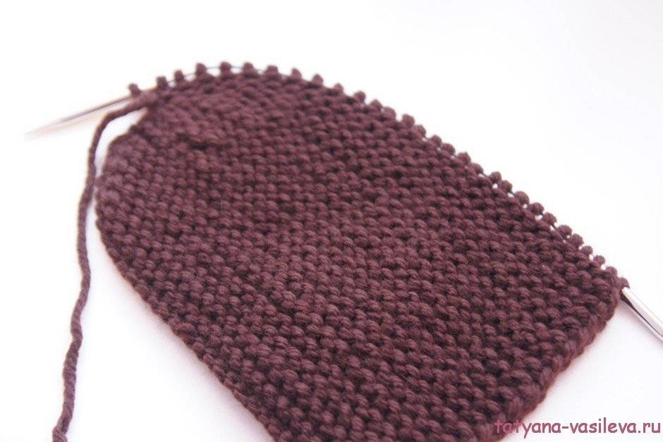 Итак, достаньте из своей корзины для рукоделия круговые спицы под номером четыре. Свяжите резинку, а после этого переходите на лицевую гладь. На первом этапе необходимо набрать петли (88 штук). Продолжайте работу, вывязывая поочередно две лицевые и две изнаночные петельки. Оптимальный размер этой части – 7-8 сантиметров, но вы можете самостоятельно выбирать ширину. Когда длина изделия будет оптимальной, стяните петли, а узелок спрячьте внутрь.