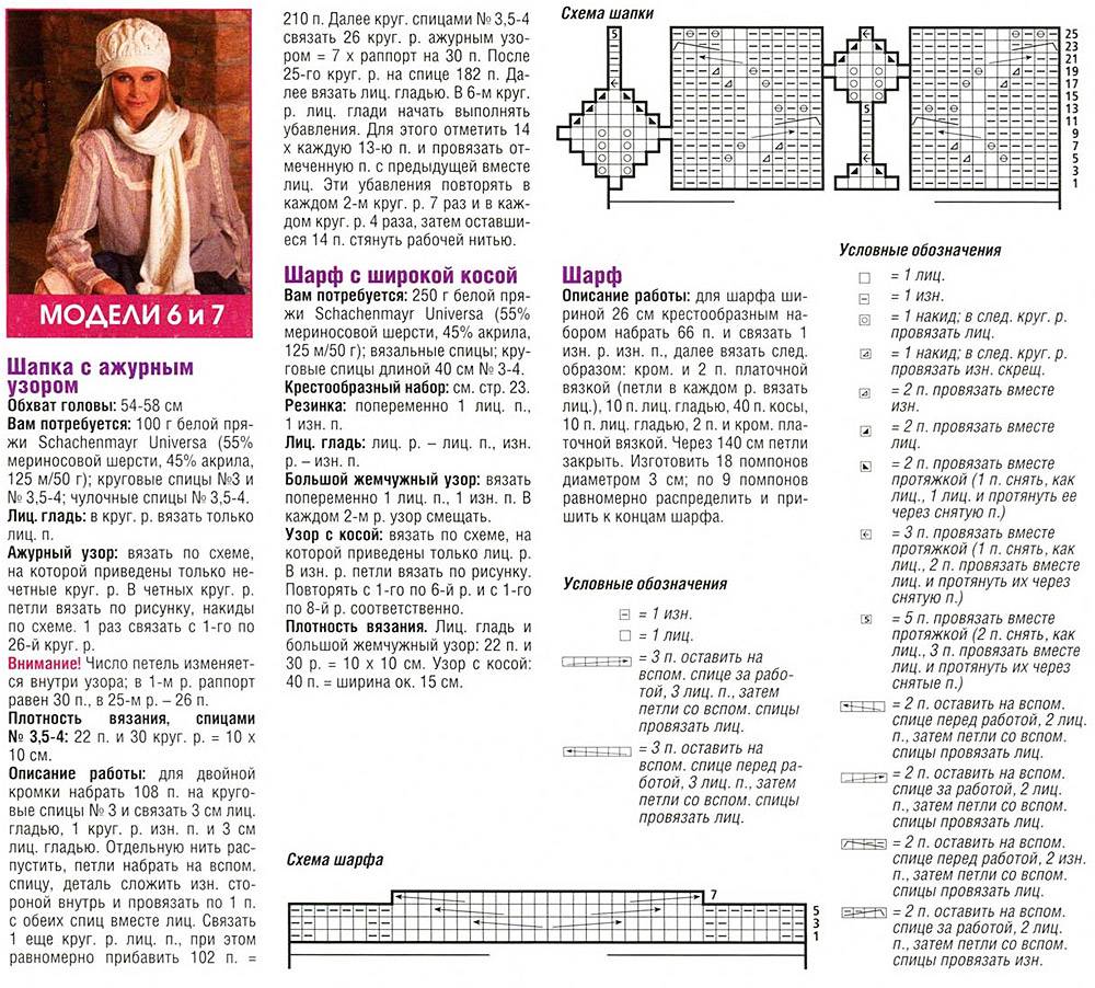 Фото 3: схема вязания спицами шапки с ажурным узором