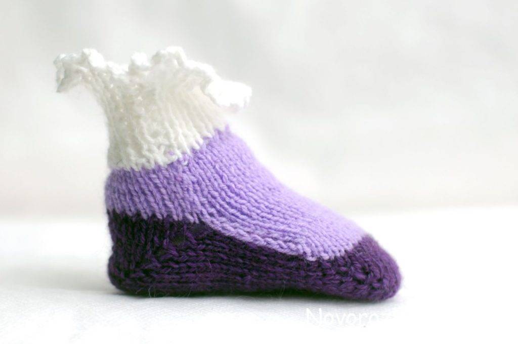Большой выбор современной пряжи предоставляет простор для творчества. Можно связать декоративные носочки, а можно теплые из натуральной шерсти. Приоритетом для выбора материала является здоровье и комфорт малыша.