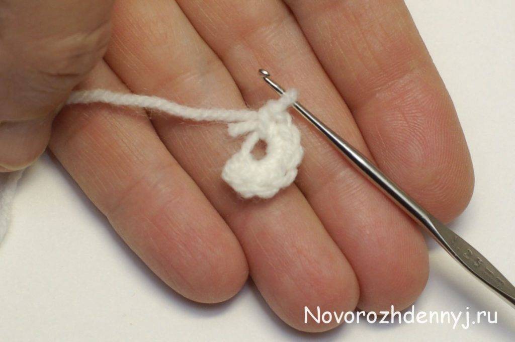 Берем крючок, у нас № 1,25, и в первую петлю свободную провязываем 3 воздушных петли.