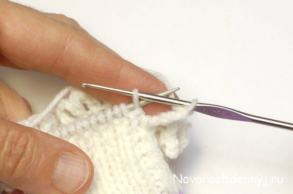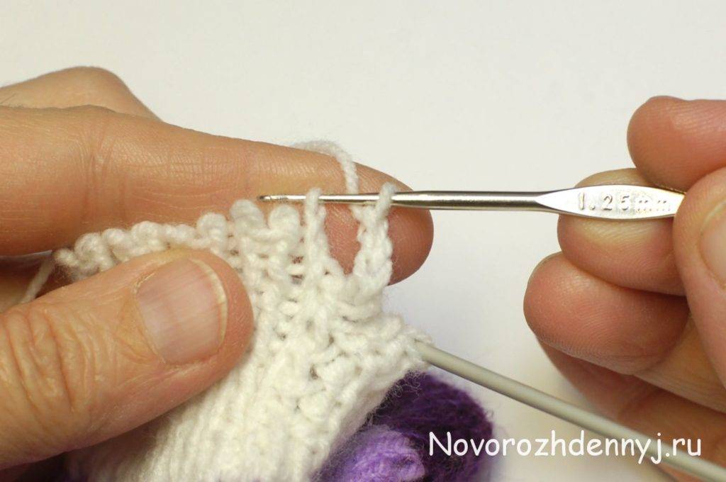 - Начинаем провязывать бока: берем отложенные спицы и делаем при помощи крючка новые петли, уже набранные должны равняться убавленным.