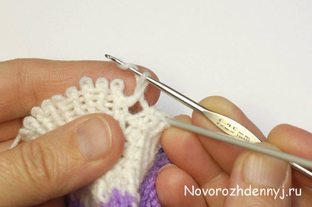 И снова поднимаем 3 вп (воздушных петли), снова сбн ( столбик без накида ), так до конца ряда.