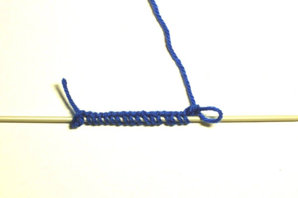 Проденем в неё спицу, и начинаем вязать ряд из лицевых изнаночных петель, чередуя, резинкой.