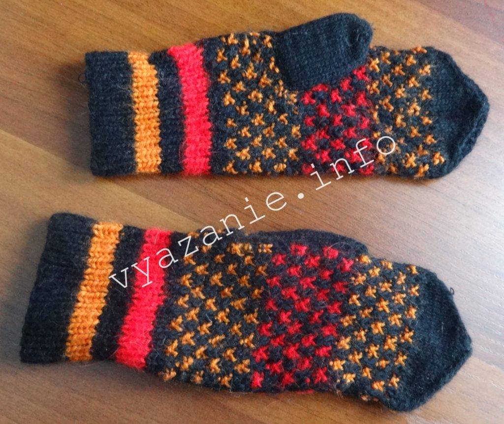 - Убираем рабочую нить на изнаночную сторону. При необходимости варежки стираем или распариваем.