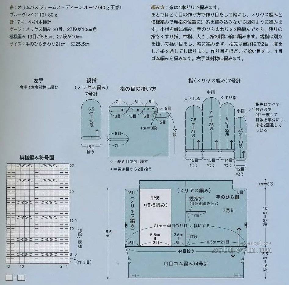 Обратите внимание, что количество петель напрямую зависит от размера руки. Прежде чем начинать вязание, не поленитесь и сделайте пробный образец, который поможет определить его плотность