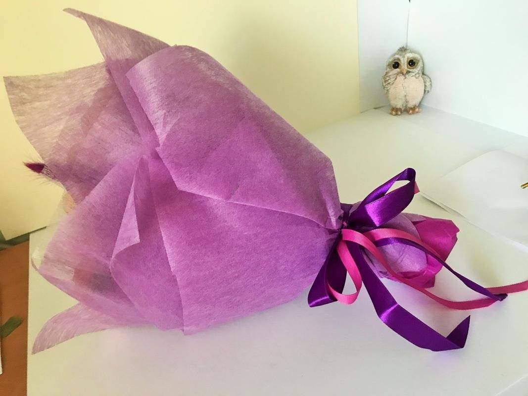 - Ткань, упаковочную бумагу, сетку – все, что может понадобиться для упаковки букета
