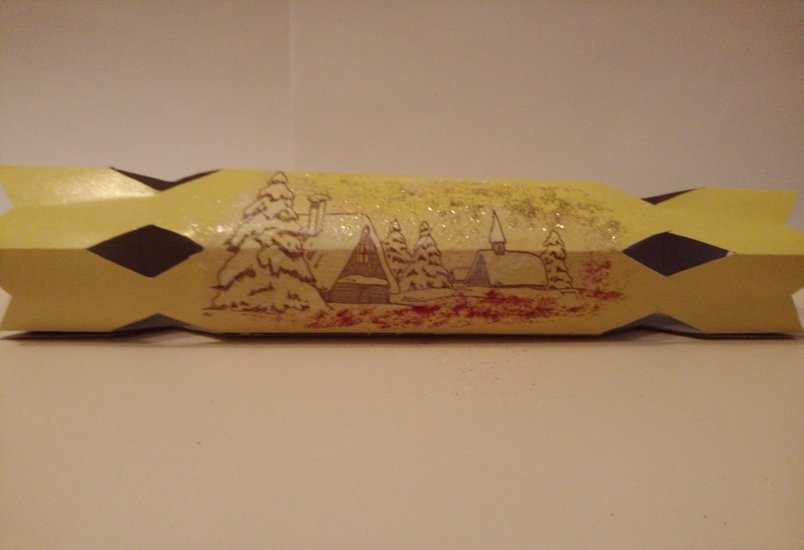 - Аккуратно закрепляем обертку тонкой полоской скотча;
