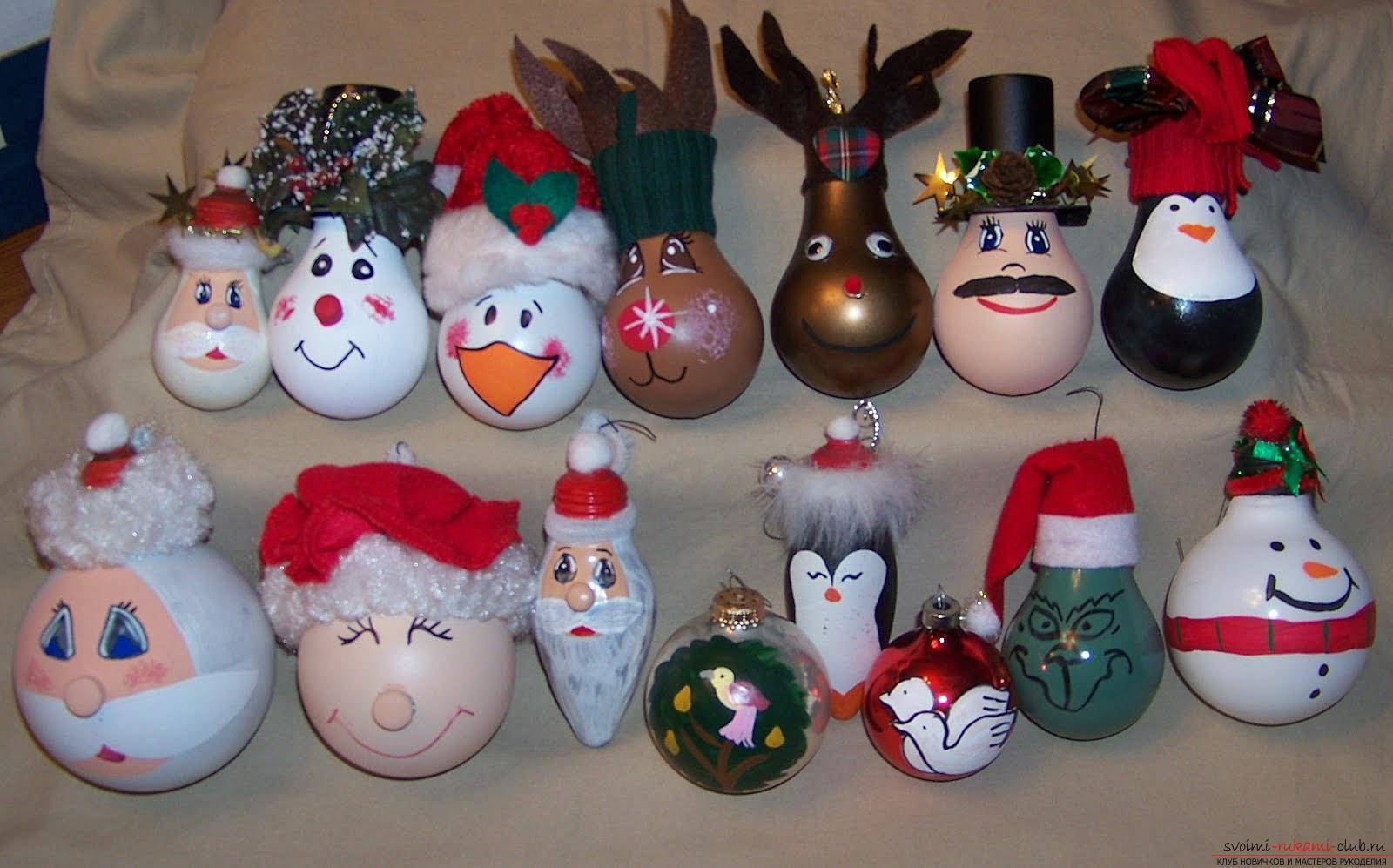 На Новый Год из лампочек получатся отличные елочные игрушки. Понадобится жидкий клей, блестки, ленточки, бусинки, бисер и т.п.