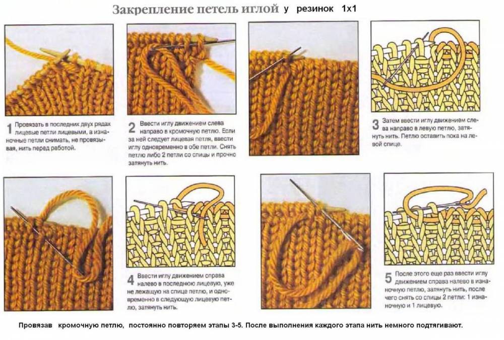 Чтобы край изделия, связанного английской резинкой, выглядел аккуратно, петли следует правильно закрыть. Для этого вам следует: