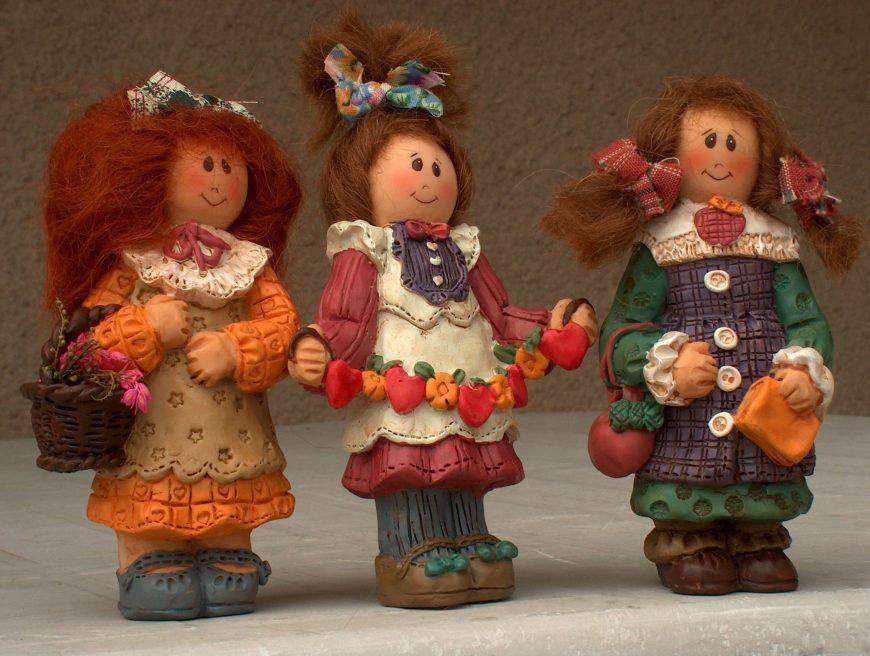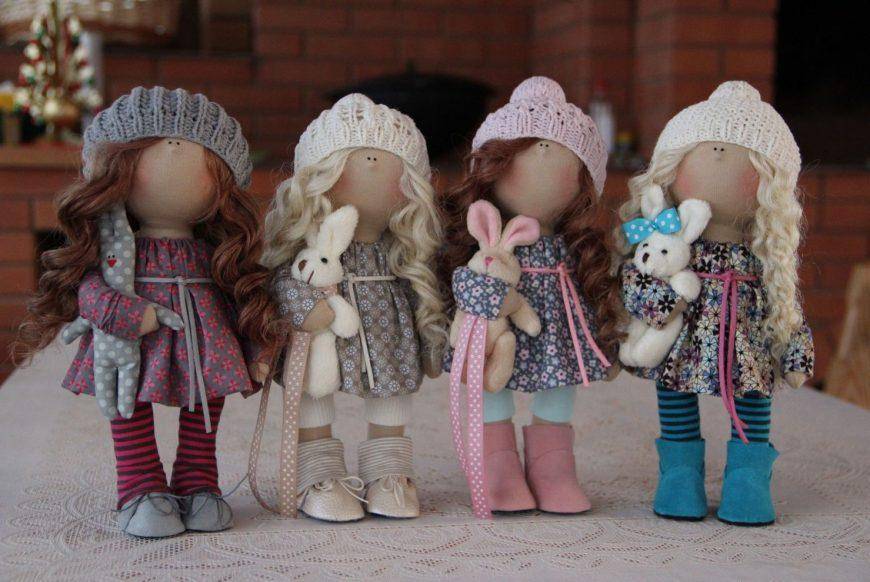 - У тканевых кукол волосы чаще всего изготовлены из пряжи или ниток. Такой выбор достаточно очевиден — волосы идеально подходят по составу к самому изделию, а также легко крепятся.