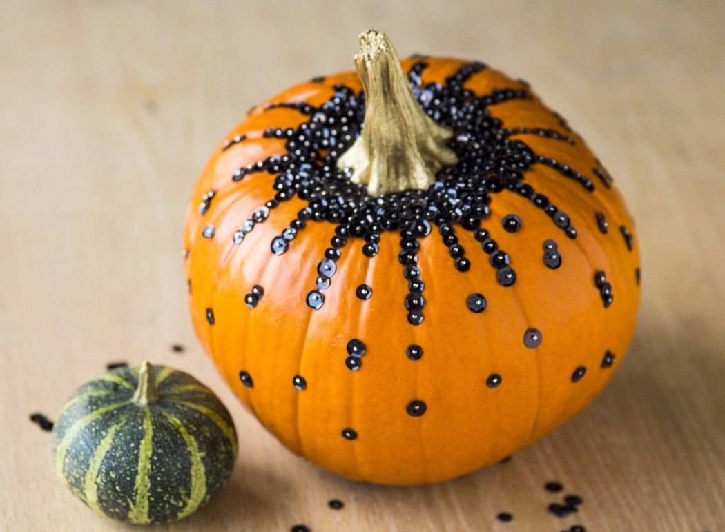 - Украсить тыкву орнаментом из паутины и пауков.