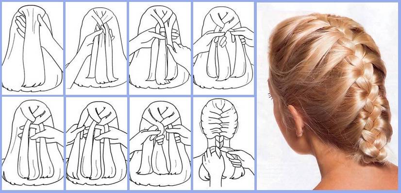 Моем волосы и тщательно выравниваем при сушке феном. Кончики закручиваем и сбрызгиваем лаком средней фиксации. По надлобной области собираем прядки в 1-2 см шириной с поперечным пробором, завиваем в жгутики и закрепляем на затылке. При необходимости фиксируем дополнительно лаком. Можно украсить прическу бантом или цветком.