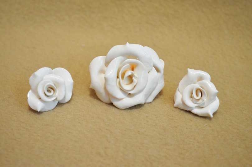 Готовые цветы легче по весу, более декоративные, чем из холодного фарфора. При застывании лепестки полностью непрозрачные и матовые.