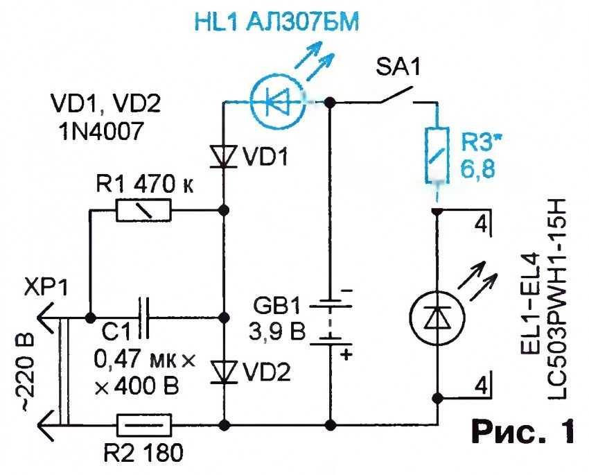 Схема светодиодного фонарика