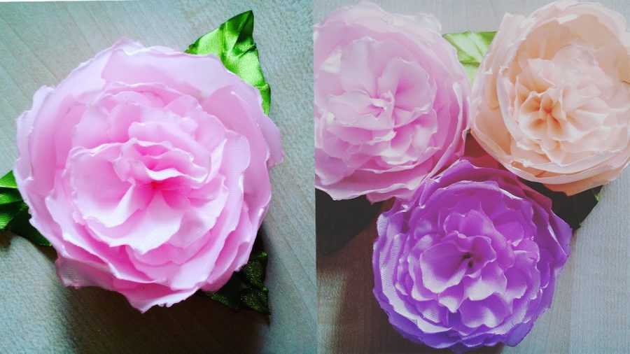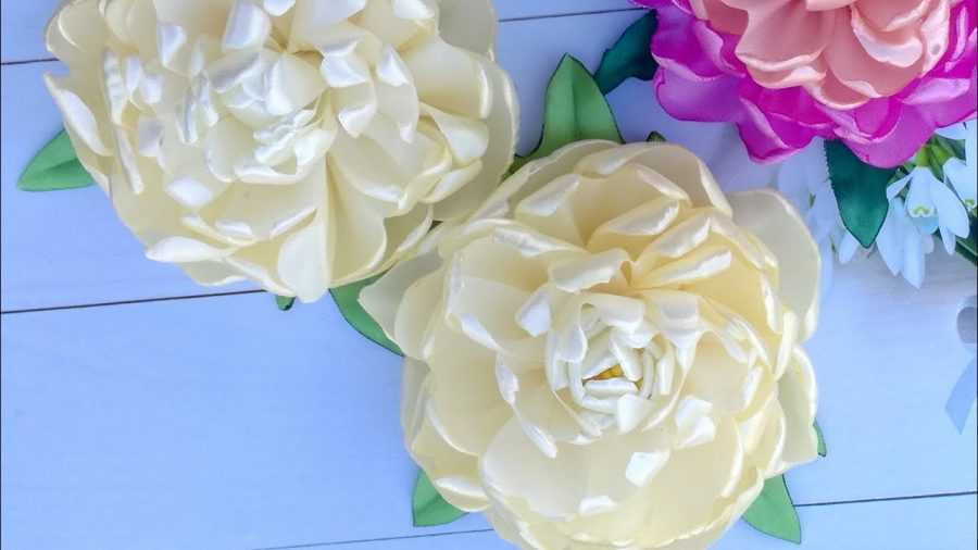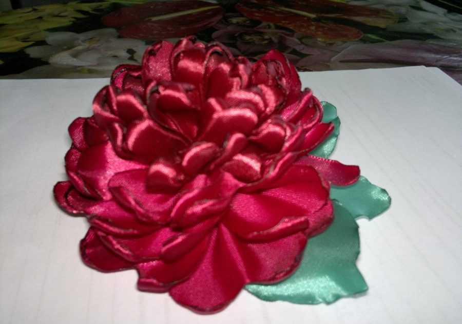Пион делается иначе, немного сложнее. Подробный мастер-класс по цветам из атласной ленты нам поможет. Нам понадобится самая широкая, 5-сантиметровая лента, из которой нужно изготовить множество деталей.
