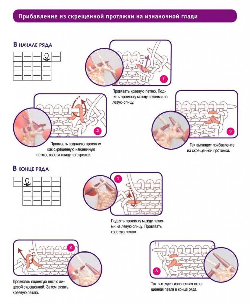 - используется патентная петля – на лицевой стороне вяжутся изнаночные петли, на изнаночной стороне введите спицу на ряд ниже и провяжите одну лицевую петлю;