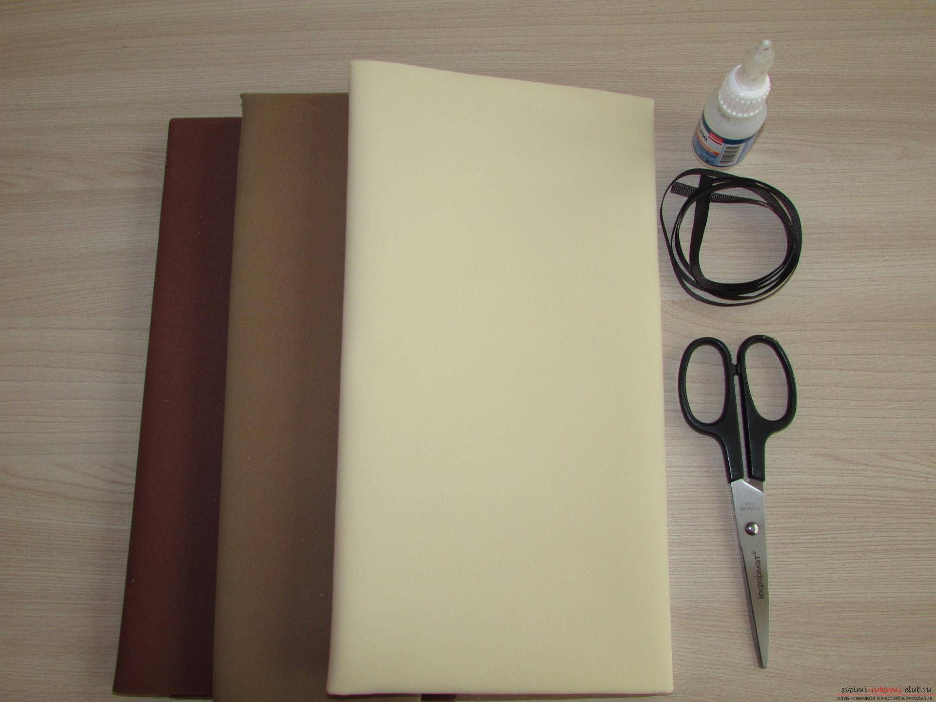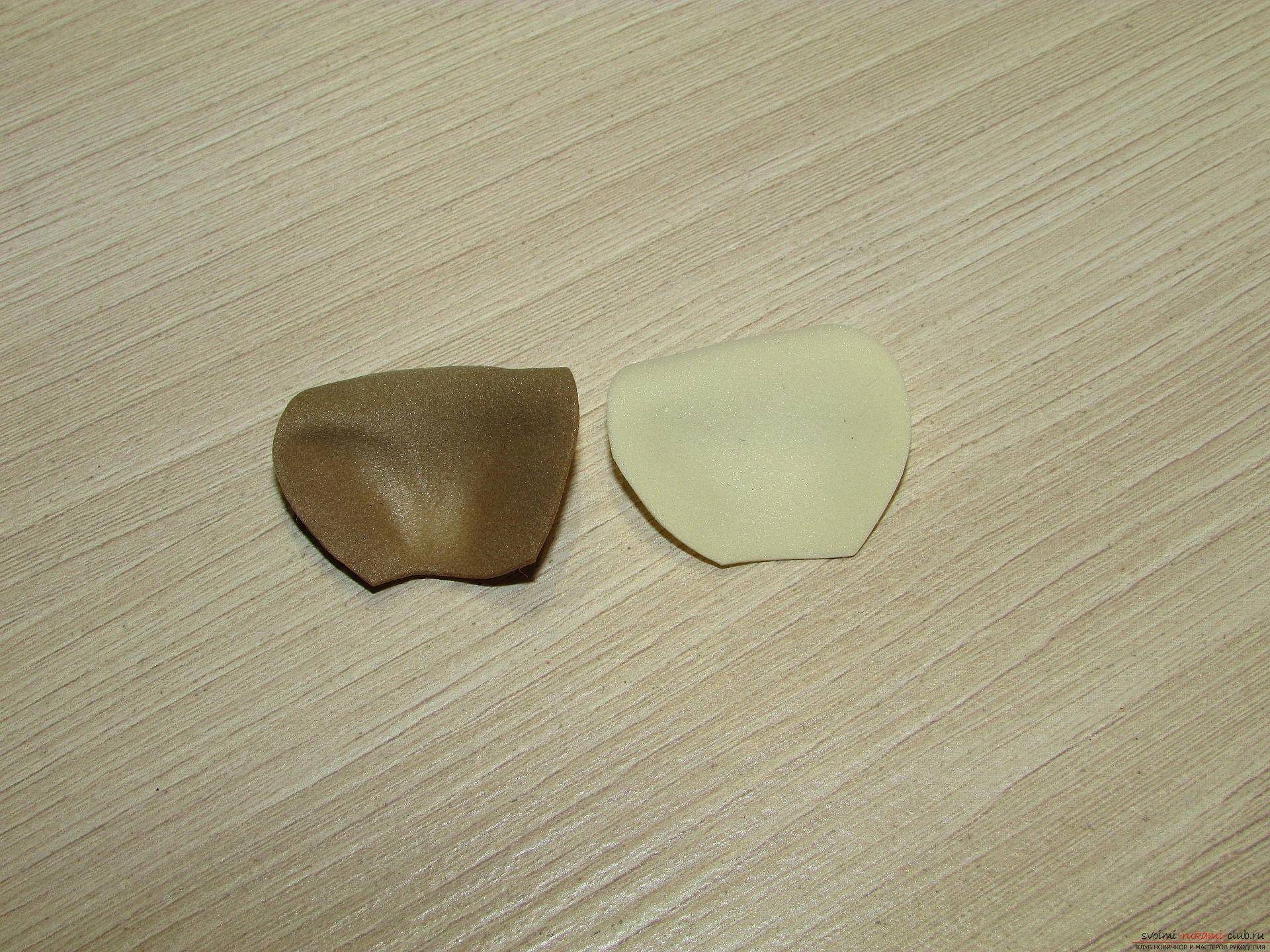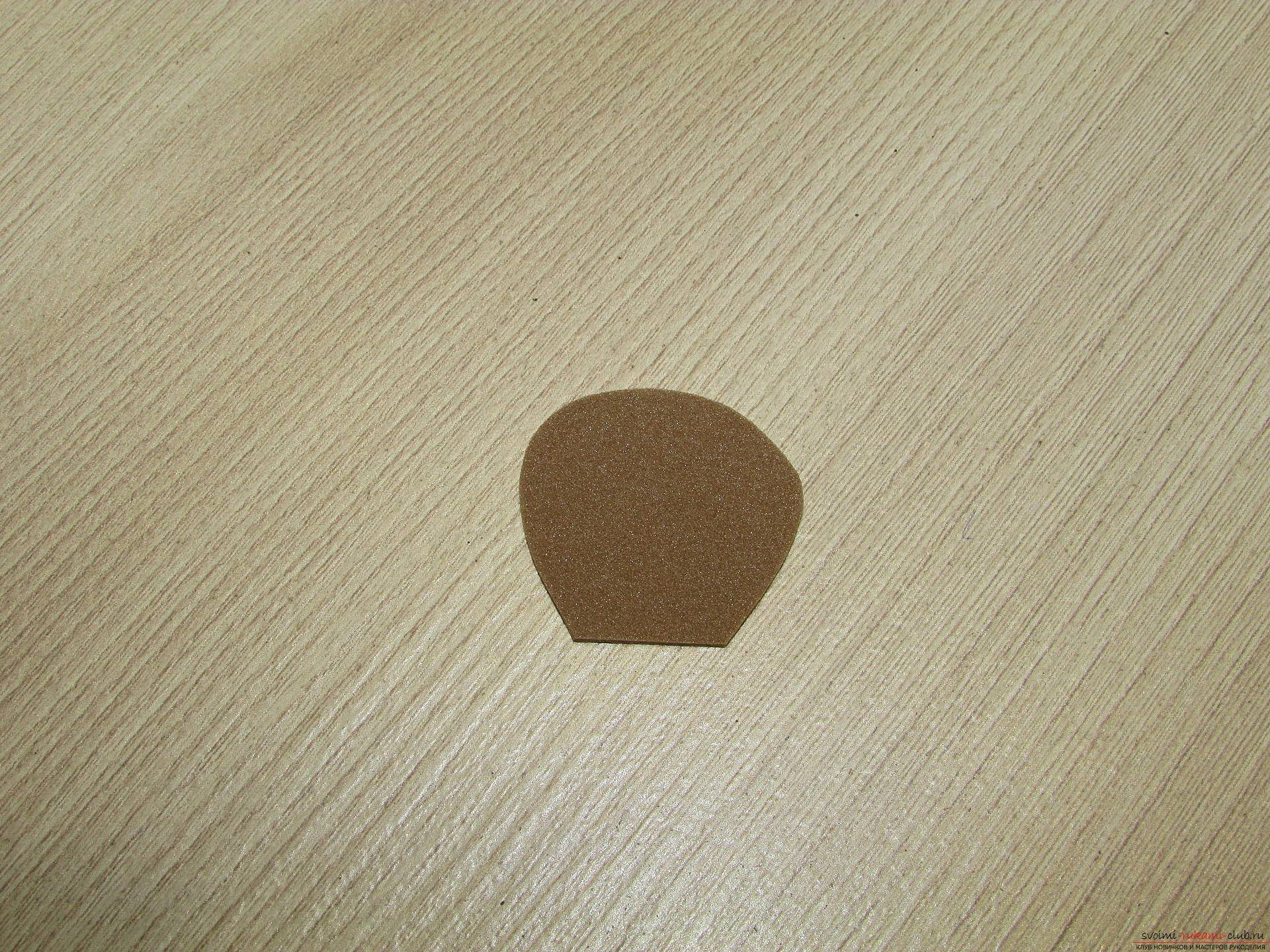 Повторите такие же действия с фоамираном бежевого оттенка и присоедините обе части, стыкуя их друг с другом.