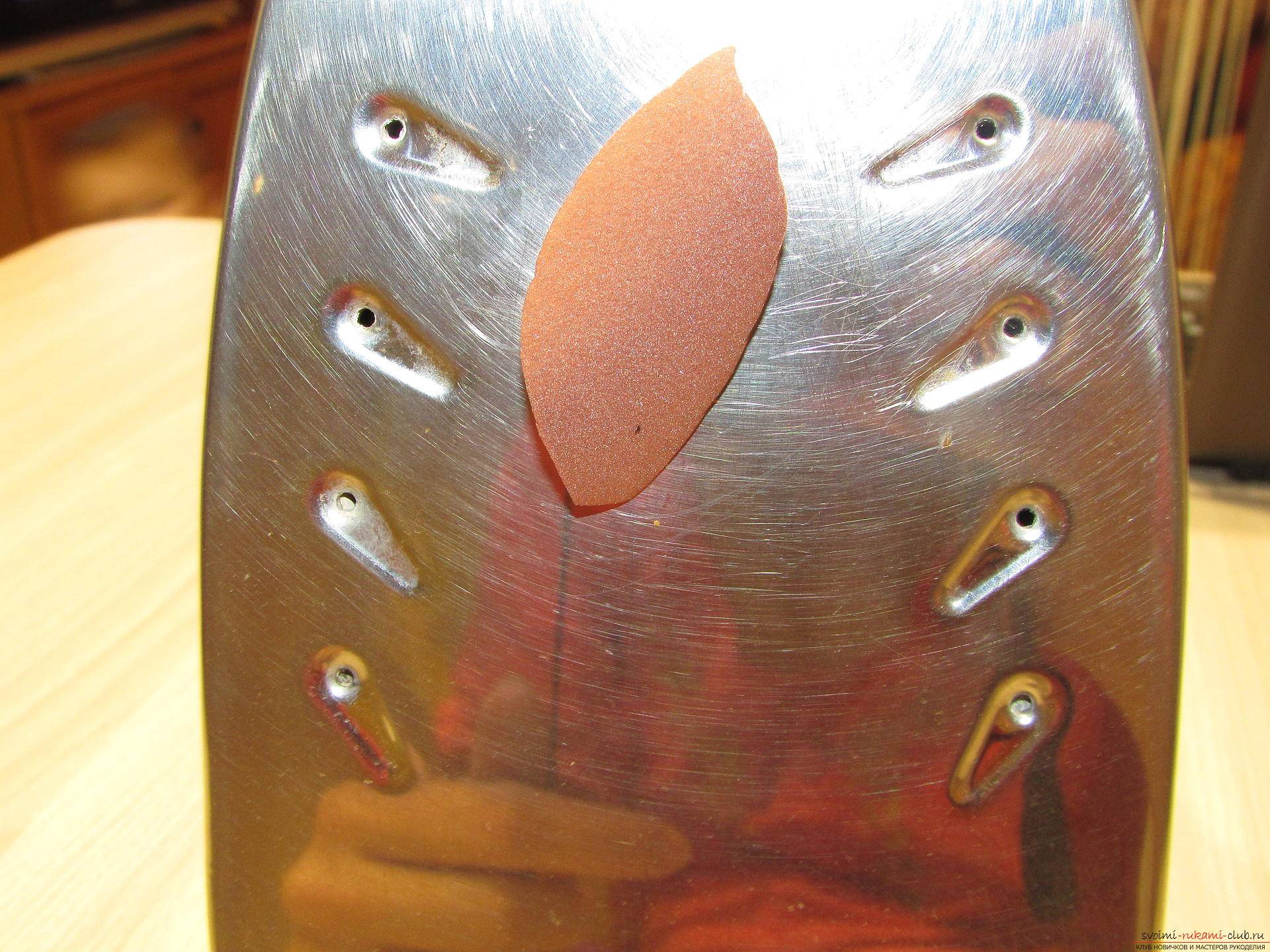 Заготовку немного нагревают утюгом и прижимают к поверхности молда