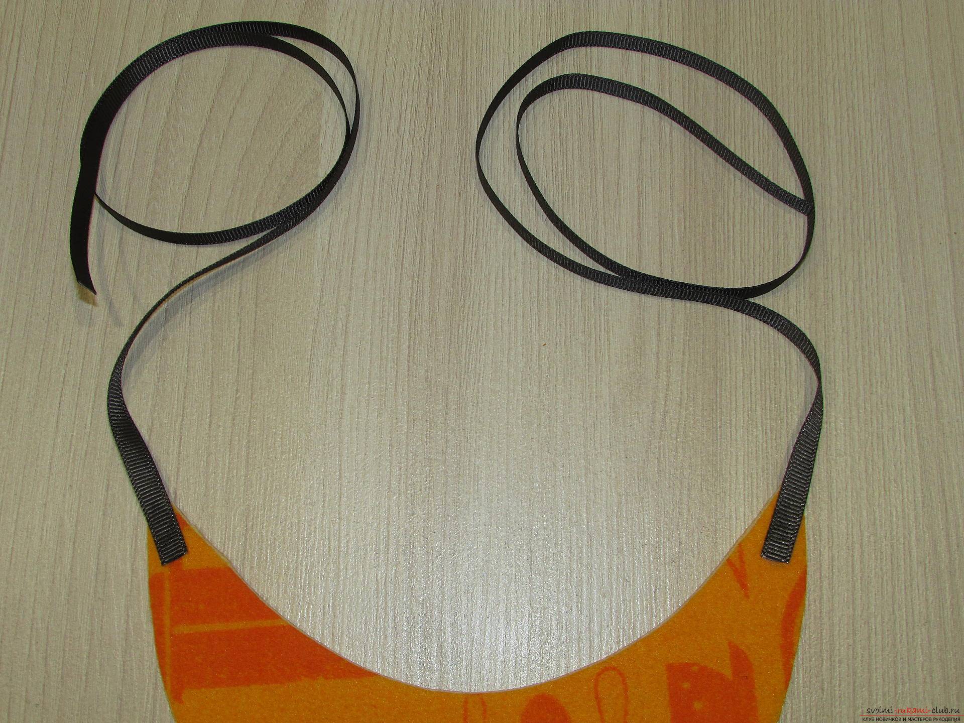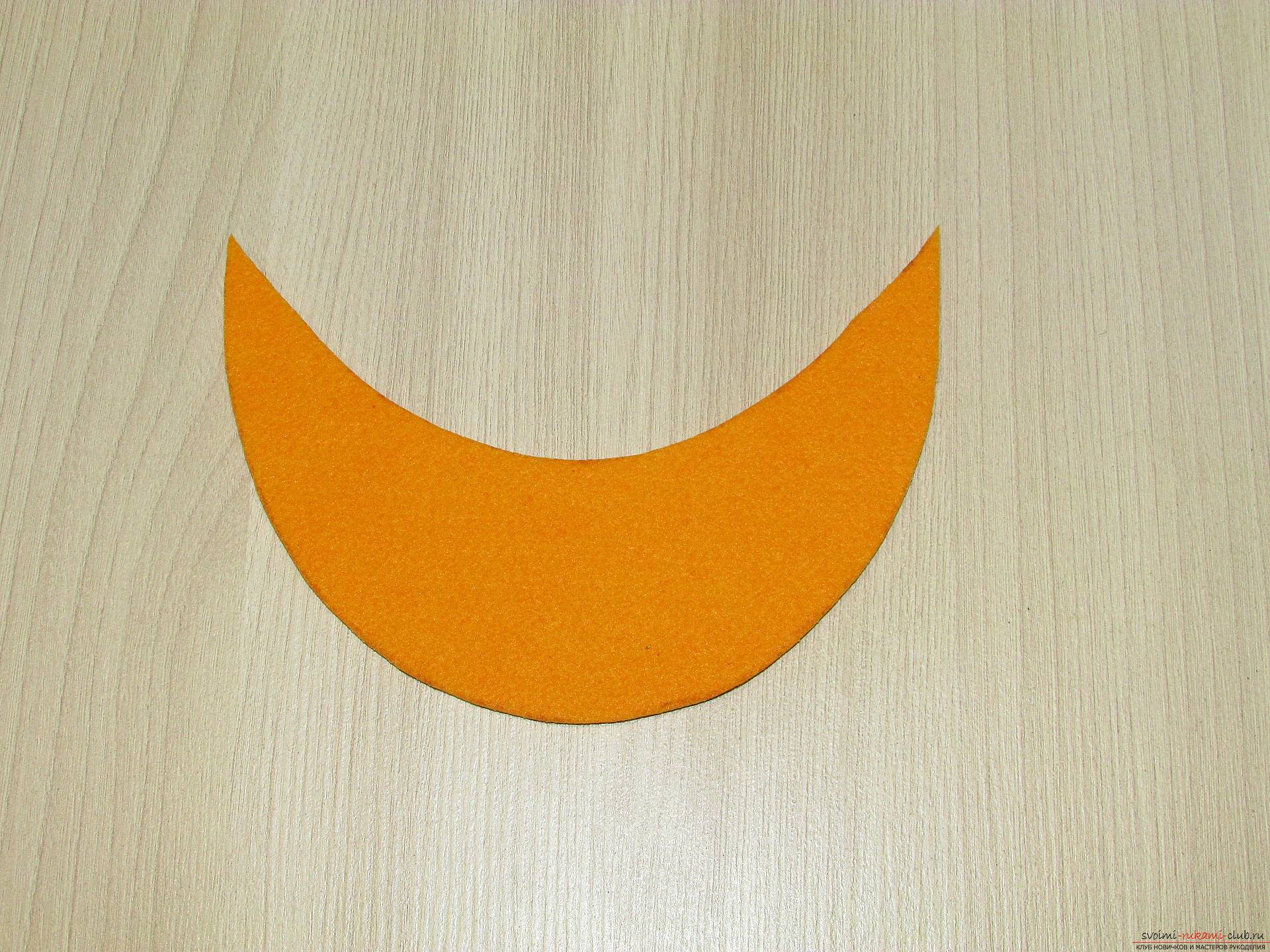 Из ярко-желтого резинового бархата отрезать узкую полоску размером 27х2 см и надрезать по всей длине, чтобы получилась бахрома.