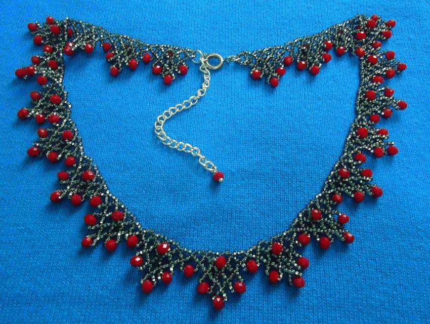 Примечательно, что колье из разного бисера легко и просто плетется при помощи крючка и лески, а также вы можете использовать в чередовании компоненты разного размера, что сделает ваше изделие более изумительным и воздушным.