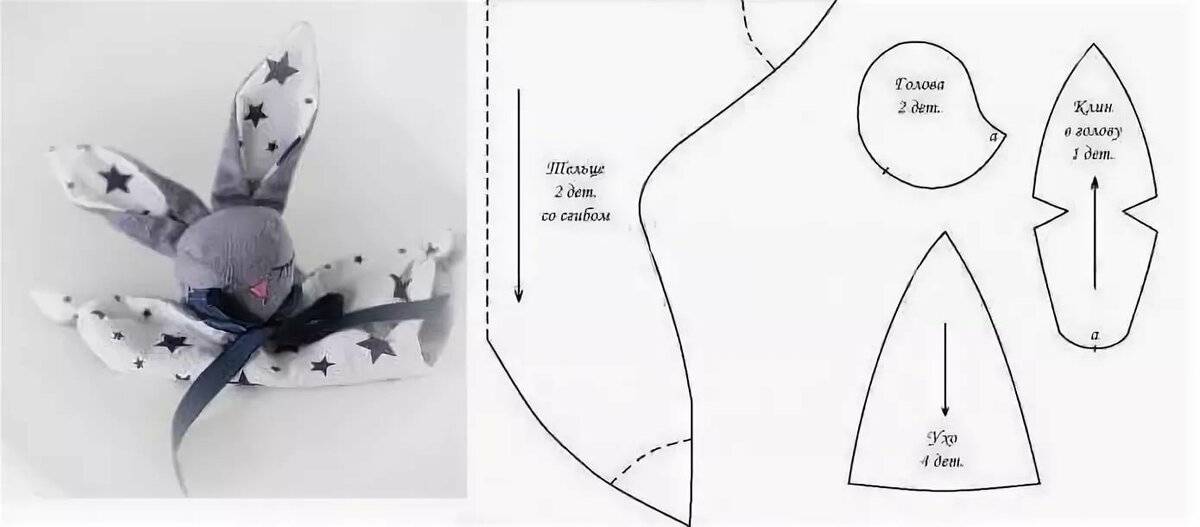 Аналогично выкраиваем тело из фланели, а также 2 пары ушек, 2 детали головы и 1 клин ( не забываем про припуски на швы около 1 см).