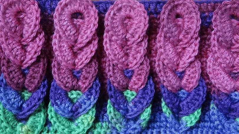 Орнамент может состоять из различного количества рабочих петель, поэтому перемещать нужно качественно. Петли не должны быть слишком затянуты или расслаблены. Внимательно следите за направлением перекрещивания петель. Оно зависит от расположения дополнительного инструмента при вязании – перед полотном или за ним.