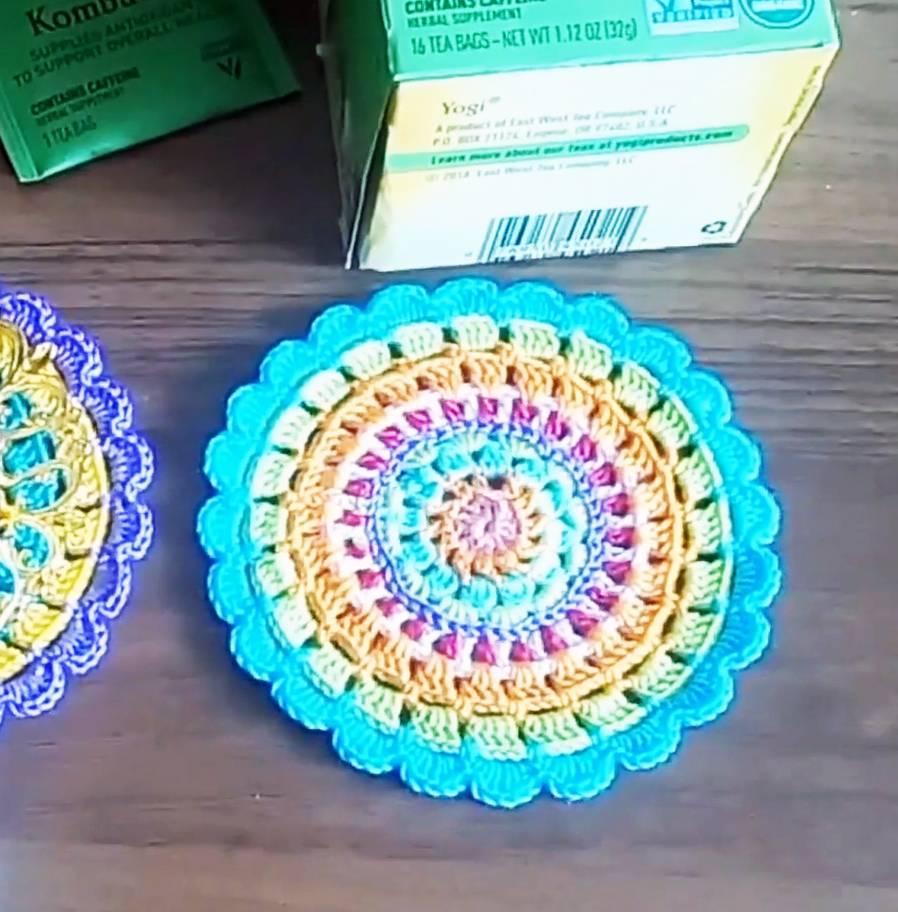 - Обязательно прикладывайте вязание к основному полотну, чтобы правильно рассчитать диаметр боковой части. Свяжите 2 одинаковые детали.