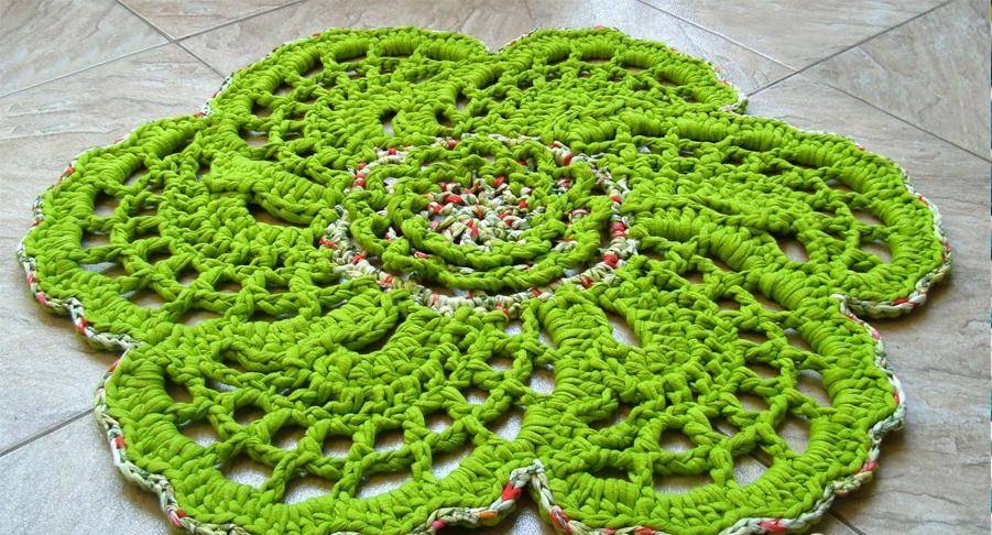 Коврик овальный крючком на пол из старых футболок: схема с описанием и фото