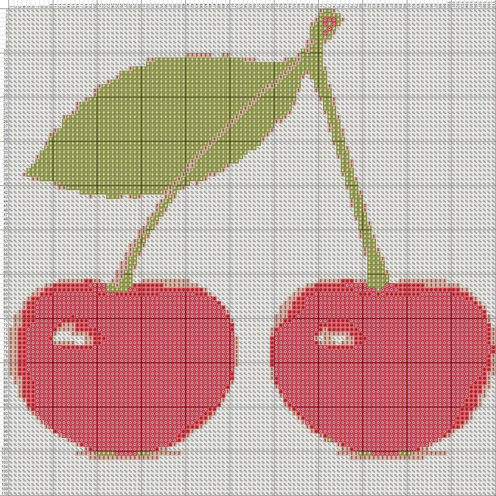 - Отступите от низа вишни 4 клетки, повторив рисунок красной ягоды.