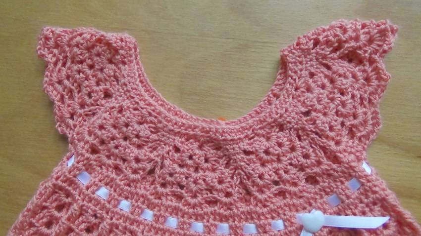 Красивое комбинированное детское платье — вязание крючком кокетки + ткань