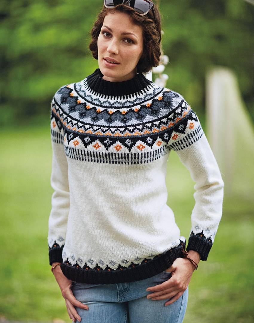 Например, если ввязать её в верхнюю традиционную часть пуловера или лопапейса (исландского свитера) — она только усилит различные каноны и создаст разновидность ансамблей.