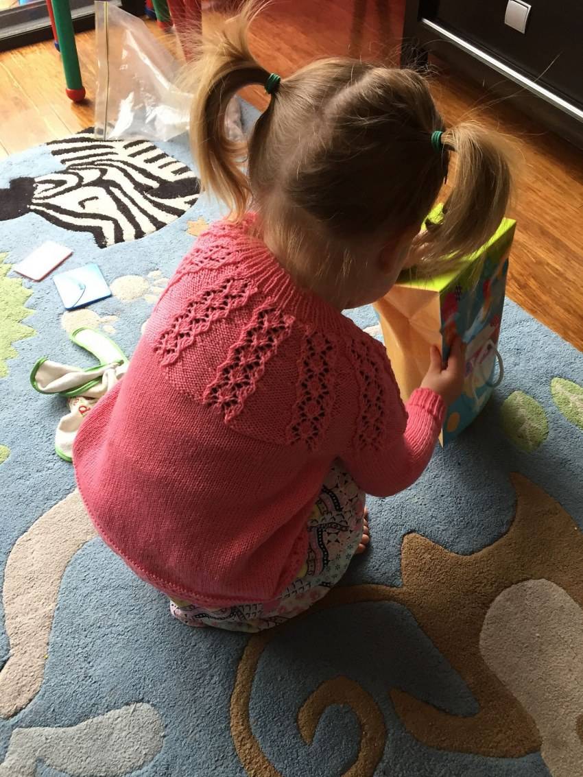 На фото, размещенном в статье, изображена интересная и довольно простая модель: детская кофта на пуговицах. Ее главным украшением становится круглая кокетка спицами. Изделие выполнено из пряжи одного цвета. Следует отметить, что на подобных моделях очень удобно изучать новые приемы.