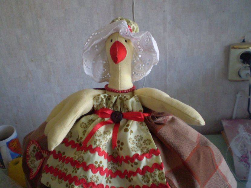 Игрушка для чайной церемонии, как писалось выше, может создаваться в виде разных образов. Курочка – отличная идея для такого изделия.
