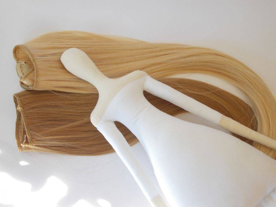 - Волосы игрушек изначально делались из ниток или распущенных сатиновых лент. Сегодня все чаше для этой цели берут кукольные парики или отдельные пряди (трессы).