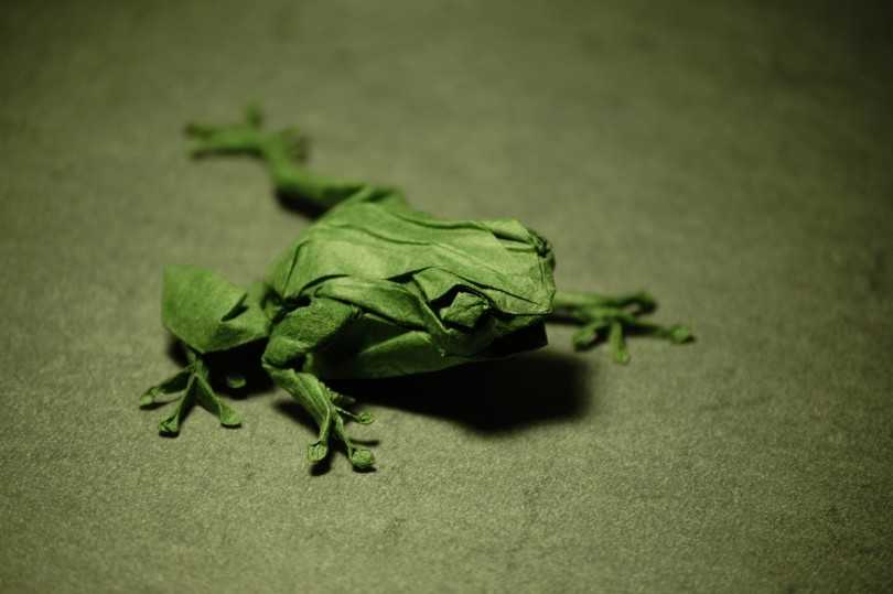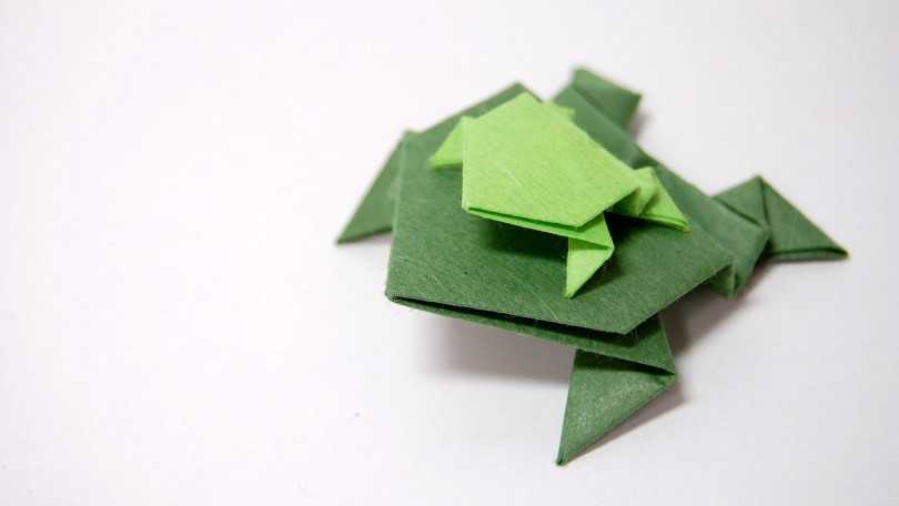Одна из самых интересных моделей в технике оригами – лягушка, которая прыгает. Работу нельзя назвать сложной, но тем, кто не знаком с искусством оригами, рекомендуется начать с более простых вариантов