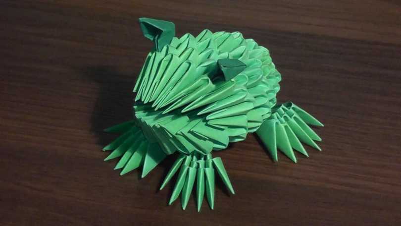 Эта модель относится к высокому уровню сложности. Приступать к ее созданию стоит тем, кто успешно освоил на практике более простые версии лягушек. На видео хорошо заметно, что опытному мастеру на создание потребовалось почти полчаса. Тому, кто впервые попробует сделать такое сложное оригами в первый раз, понадобится запастись большим терпением и тщательно выполнять каждый этап.