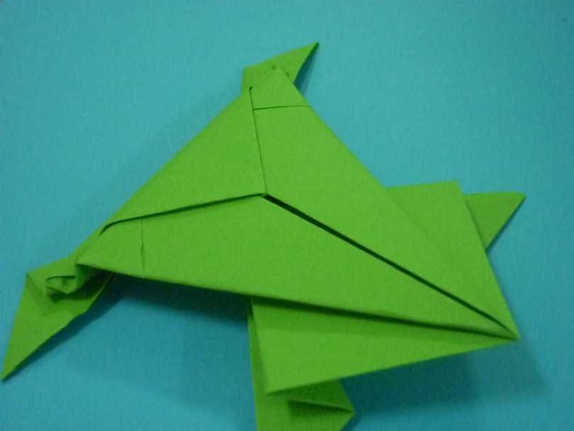 - Для того чтобы лягушка прыгала необходимо сформировать двойную складку в нижней части туловища.