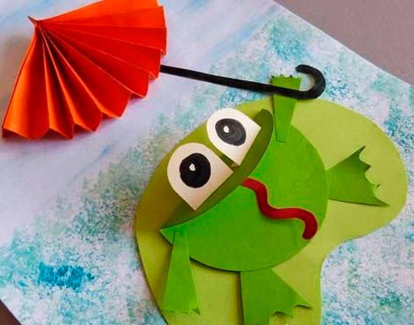 - Создавать разные аппликации. Особенно полезными считаются сюжетные картины. Это более сложный вид художественной деятельности, однако, именно он полностью раскрывает творческий потенциал ребенка. Например, можно взять за основу сюжет из сказки, в которой лягушки изображают какие-либо действия. Также ребенку стоит попробовать декоративные аппликации. Они представляют собой составление различных узоров и элементов.