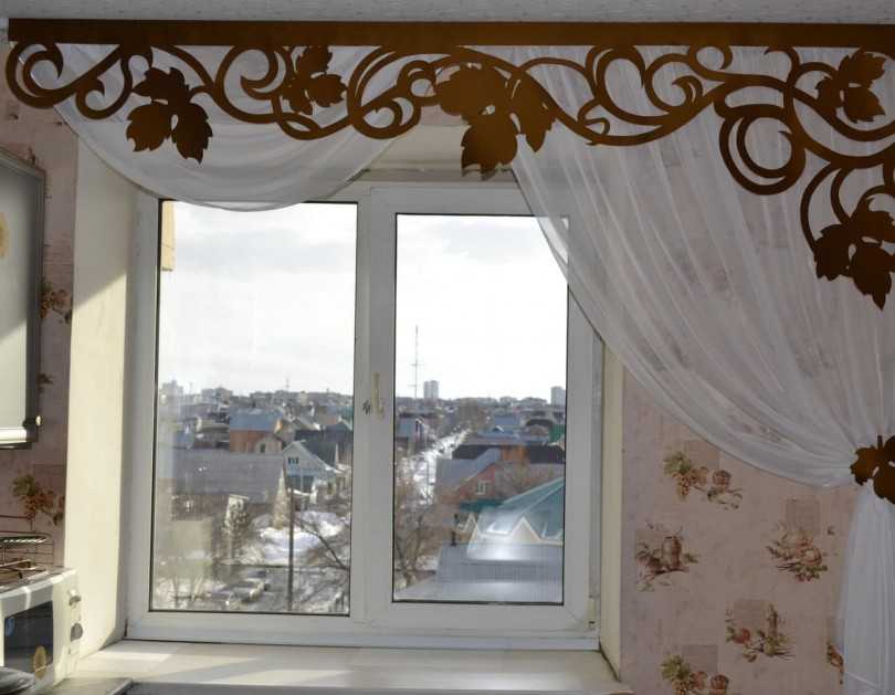 Резной ламбрекен придаст дизайну кухни яркой индивидуальности.