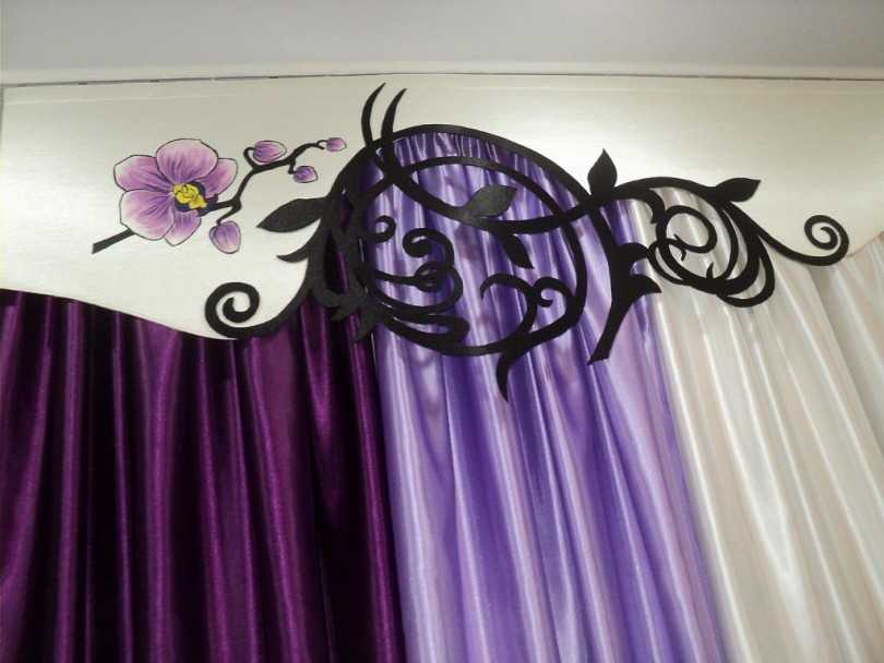 Такие ламбрекены всегда шьются жёсткими, поэтому, если вы решились на фантазийную модель своими руками, заранее приобретите материал для подкладки и флизелин для проклейки.