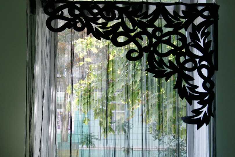 Если вы хотите украсить нижний край драпировки, к ней можно присоединить бахрому, бусы или другой вид декора