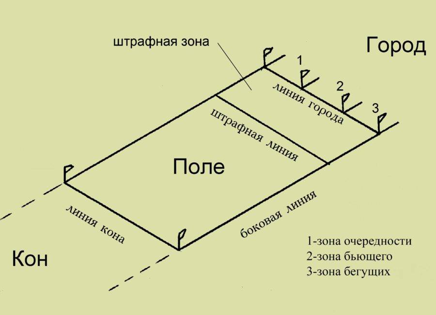 Если мяч перелетает за боковую линию, то он не идет в счет. А сам подающий не имеет права вступать за линию города. Игроку, если он не может отбить мяч лаптой, допустимо бросить его одной рукой. Засчитан будет выигрыш тогда, когда все участники хотя бы по разу ударили по мячу, но он так и не пересек кон. Партия завершена. Теперь игроки могут поменяться площадками.