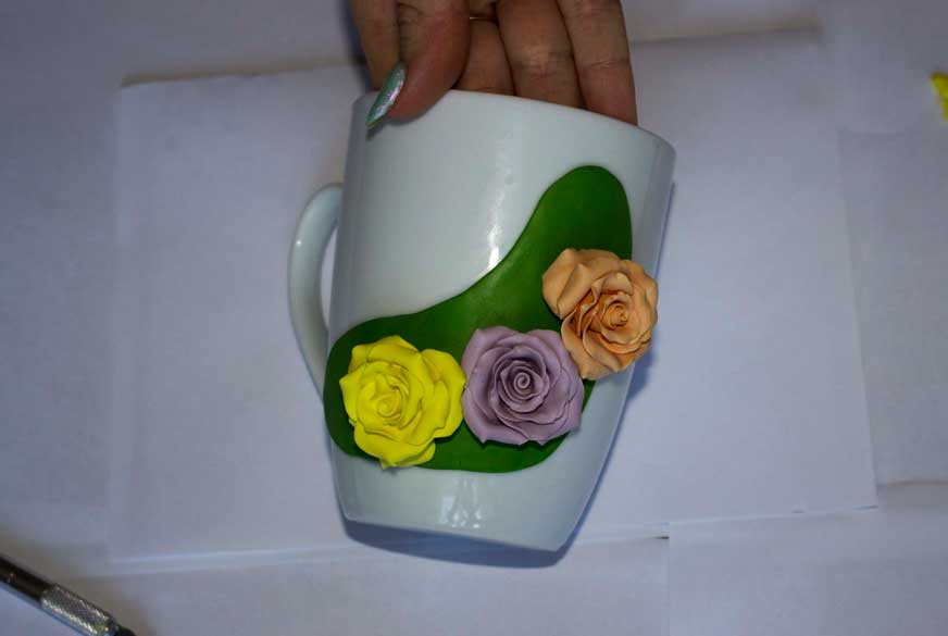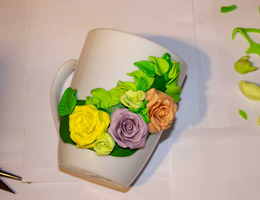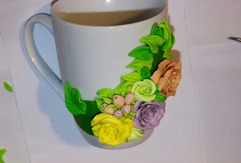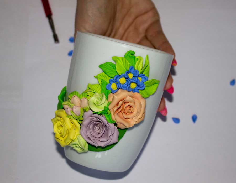 Кружка с цветами, поэтапное декорирование полимерной глиной