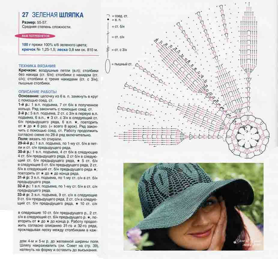 Вяжем летнюю шляпку крючком со схемами и описанием работы