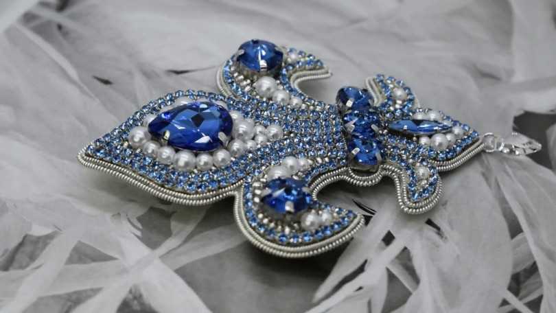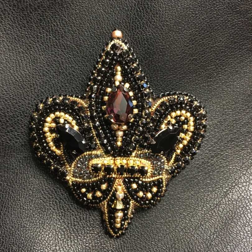 Очень модны сейчас стилизованные геральдические лилии на булавке или подвеске. Это могут быть золотые или желтые цветы, винтажные, под состаренное серебро или бронзу, с вкраплением поделочных камней, кристаллов.