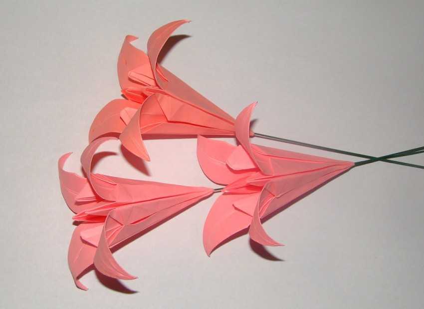 В результате на фото мы можем посмотреть, какая у нас должна получиться лилия из бумаги.
